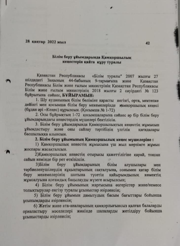» » » Білім беру ұйымдарында Қамқоршылық кеңестерін қайта құру туралы