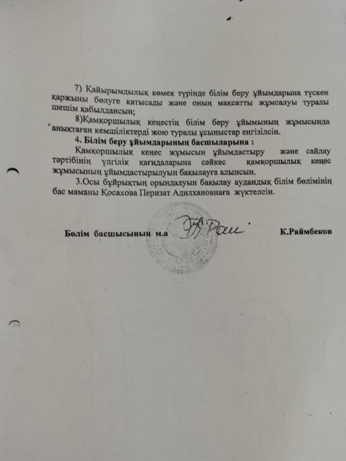 Білім беру ұйымдарында Попечительский советтерін қайта құру туралы